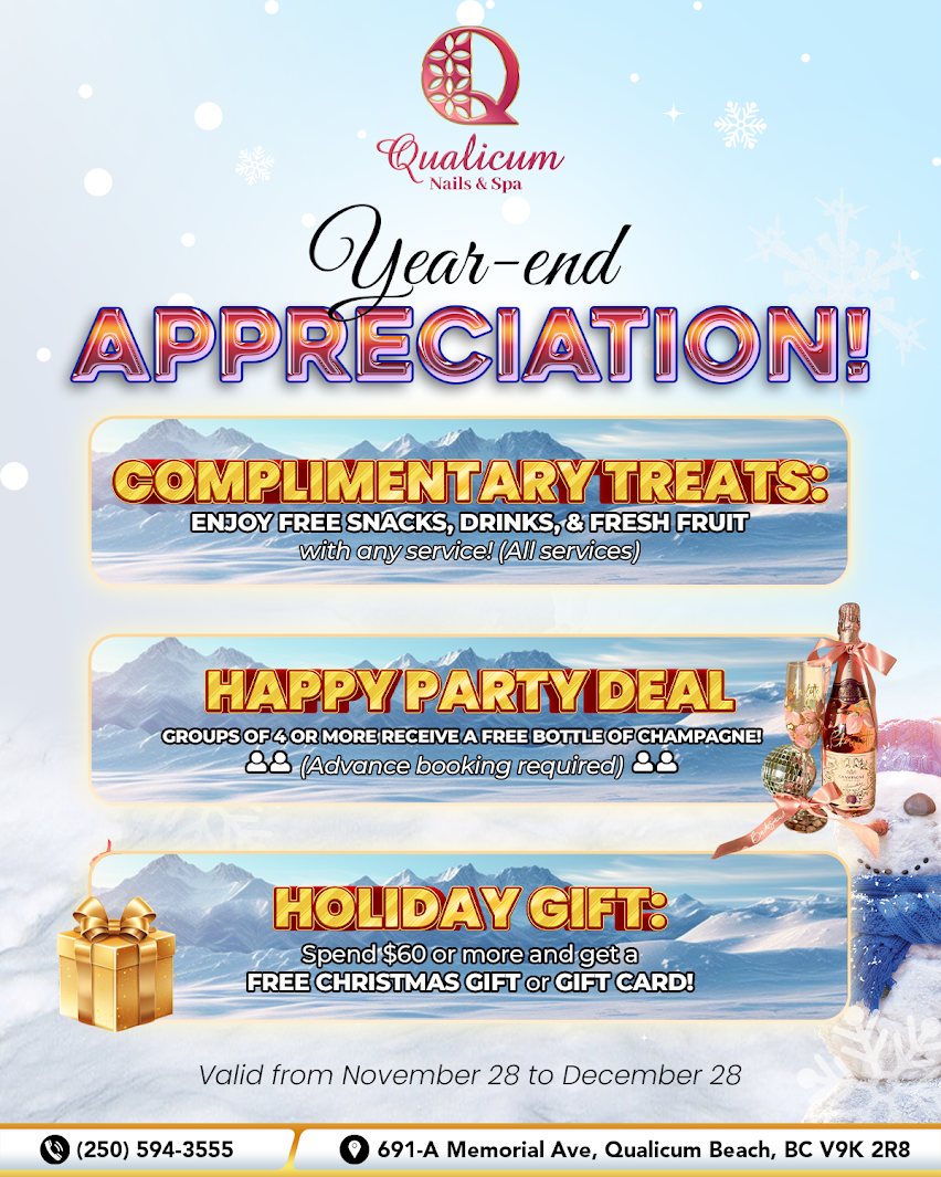 Qualicum Nails is where artistry meets absolute perfection. Forget the routine—our elite technicians deliver bespoke, professional care that redefines beauty, from flawless manicures to restorative pedicures. Your style signature starts here. Experience the difference.